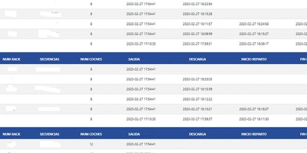Registro por cada carro del usuario, hora inicio del reparto, hora fin del reparto, secuencias incluidas en el carro.
